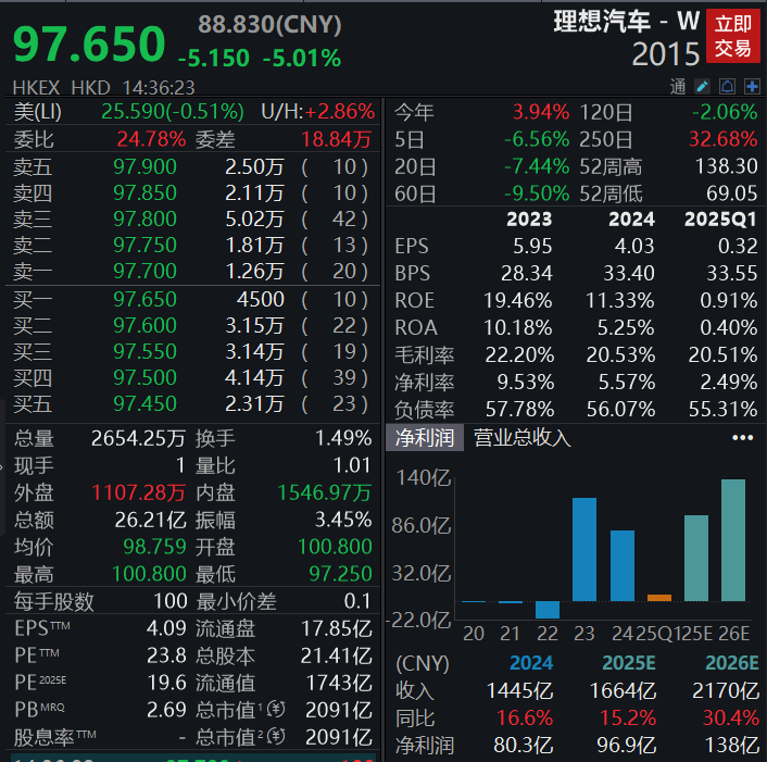 8月6日午后靠谱的配资平台有哪些,截至发稿,港股理想汽车跌超5%。